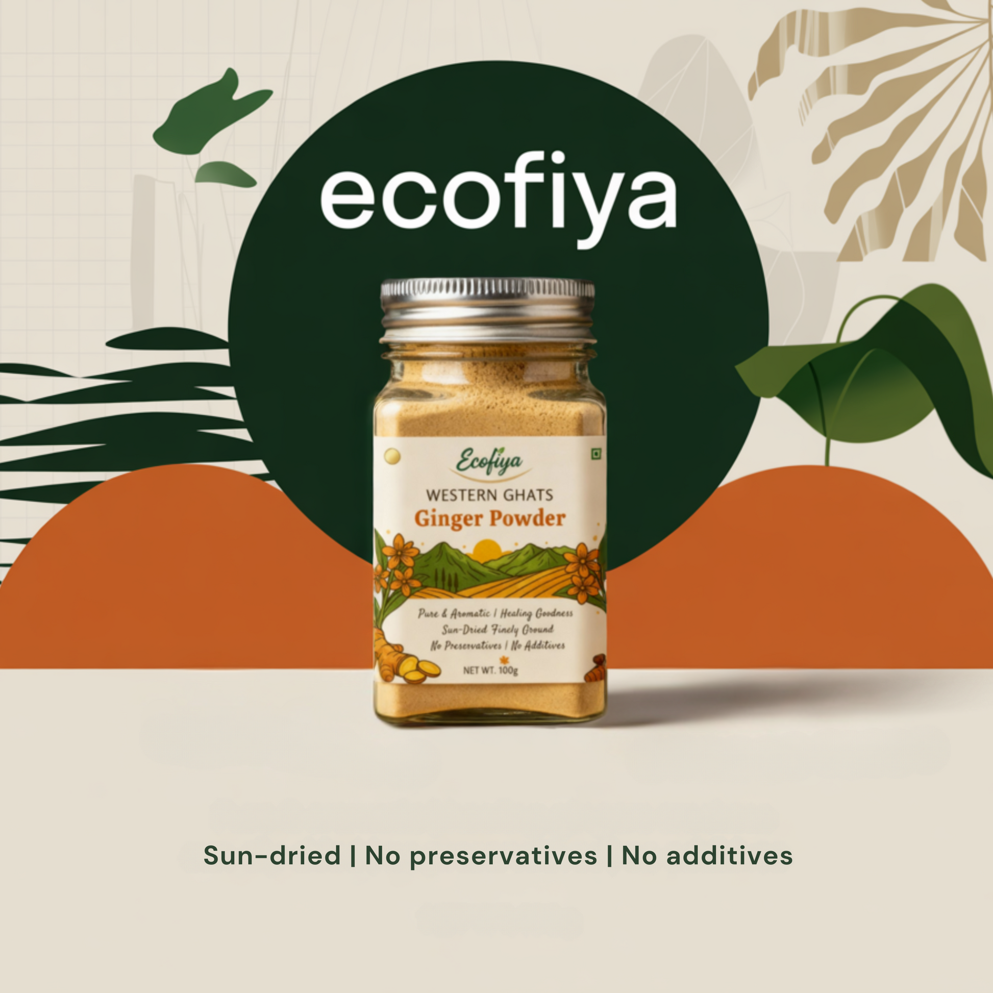 Ecofiya Ginger Powder comes from native ginger roots grown in the fertile soils of the Western Ghats. The rhizomes are carefully sun-dried and finely ground to keep their natural oils, warm aroma, and healing strength intact.